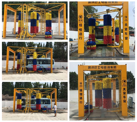 中國-四川省德陽市什邡市汽車站安裝凱沃大巴6刷通過式電腦洗車機調(diào)試現(xiàn)場拍攝