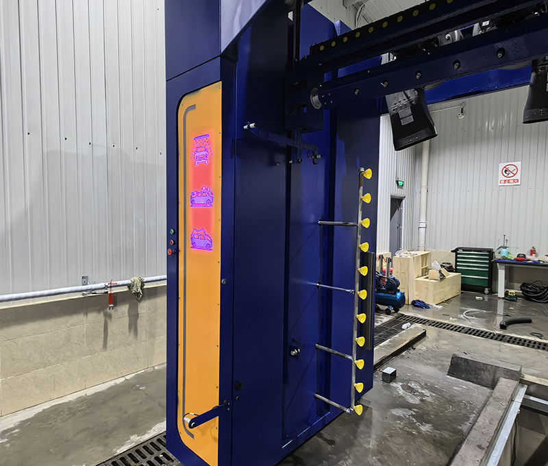 側(cè)噴,根據(jù)車輛寬度可調(diào)整洗車寬度進(jìn)行高壓噴洗